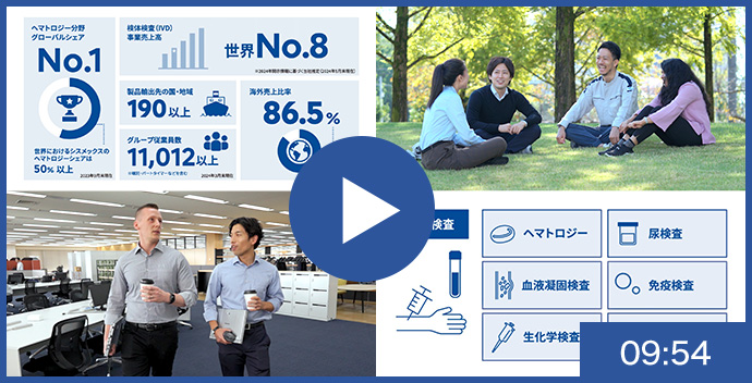 This movie provides viewers with an insight into our corporate culture and the kind of work undertaken at Sysmex through company employee interviews.